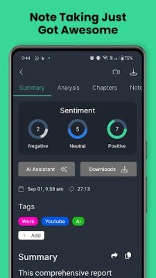 Capture interviews and meetings from your phone or tablet, generate notes and an audio transcript then share them with your colleagues through email or your favorite messaging app.
