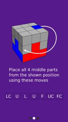 The objective is to move the sides until all faces have a single color. Rotate the sides with one finger and rotate the whole cube with two fingers. You can also move the camera by touching outside the cube. Instructions on how to solve the cube are included.