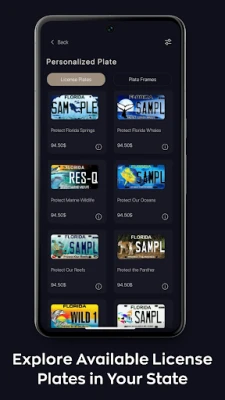 Dive into augmented reality with Plate Jade, your premier solution for trying out car license plates and license plate frames before you hit the road. Whether you're living in Florida, Texas, California, New York, or any other of the 50 states of USA or Canada, Plate Jade brings a virtual showroom directly to your smartphone for free. Lookup, apply, and test different license plates and frames on your vehicle with our augmented reality technology, ensuring a perfect match every time — just like popular car search apps.
