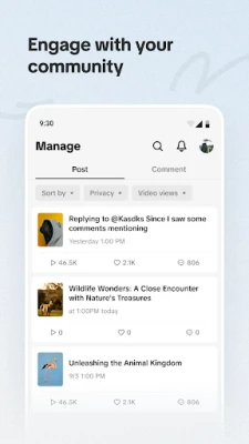 - Manage: Seamlessly manage your posts, comments and community engagement all in one place with TikTok Studio’s comprehensive suite of tools and capabilites